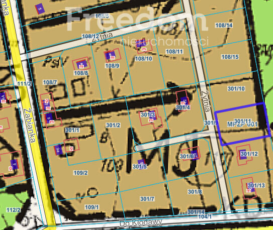 Działka nr 301/11 o powierzchni 998 m² położona jest w spokojnej